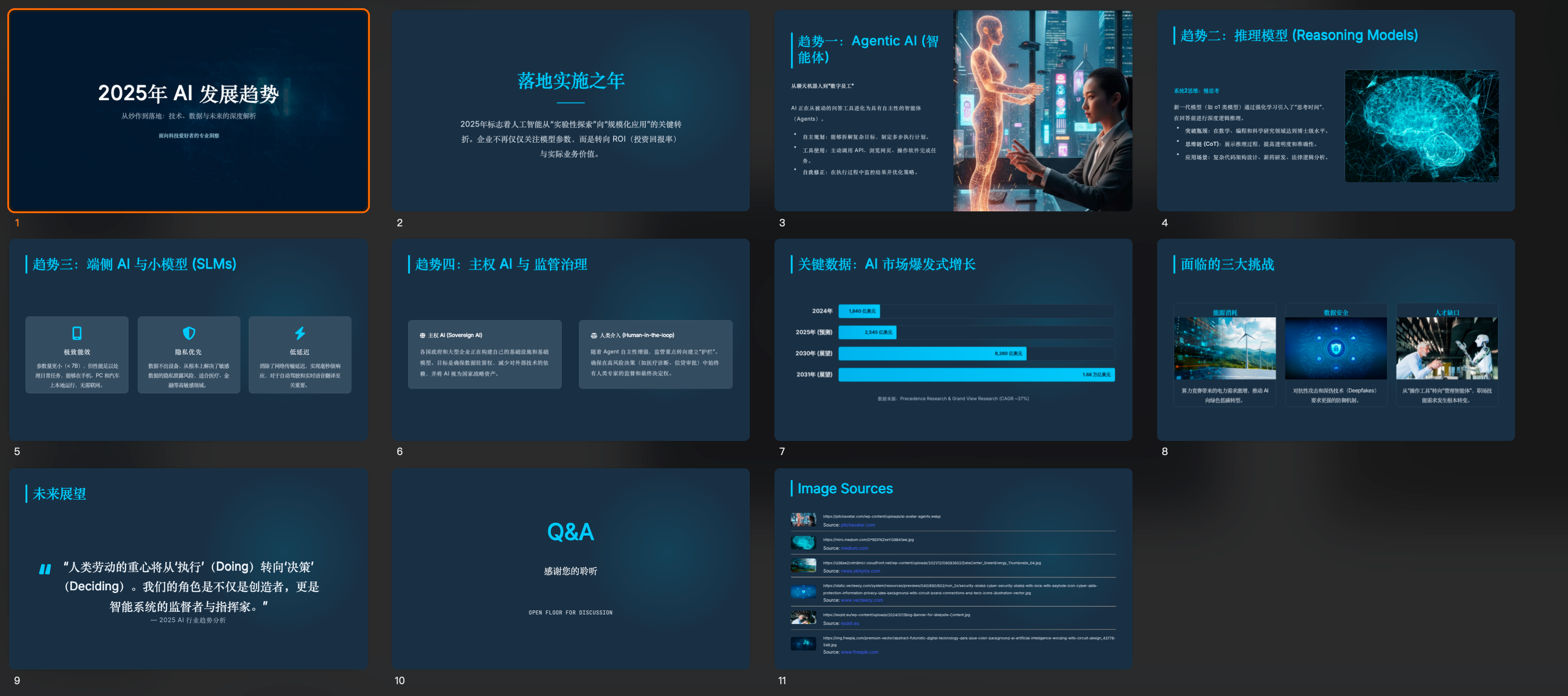 结构完整:趋势、数据、挑战、Q&A都有